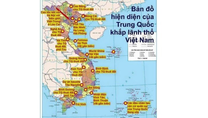 – Trung Quốc luôn luôn chọn những địa điểm có tính chiến lược để lập công ty và luôn luôn được tặc quyền Hà Nội cấp cho chúng một thửa đất rộng lớn quá nhu cầu của công nghiệp; làm như Trung Cộng lấy cớ công nghiệp để tiếp thu dần đất đai Việt Nam do Việt Cộng đã bán cho chúng tại Hội Nghị Thành Đô, bắt đầu là những thửa đất trọng yếu nhất, quý giá nhất, đẹp nhất (vùng biên giới, Tây Nguyên, duyên hải, các nơi thắng cảnh).
